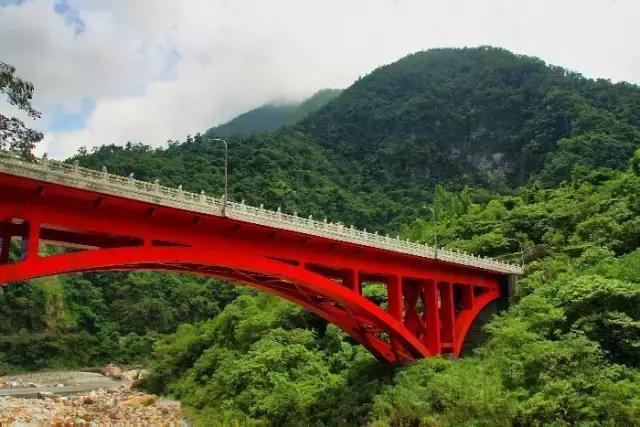 醒目的紅色鐵橋如今已經成為太魯閣的標誌,為了修建這座氣勢恢宏的大橋,整條路封封閉了兩年之久。太魯閣的燕子口落石非常多,過了牌樓記得一定要戴一頂工地安全帽。